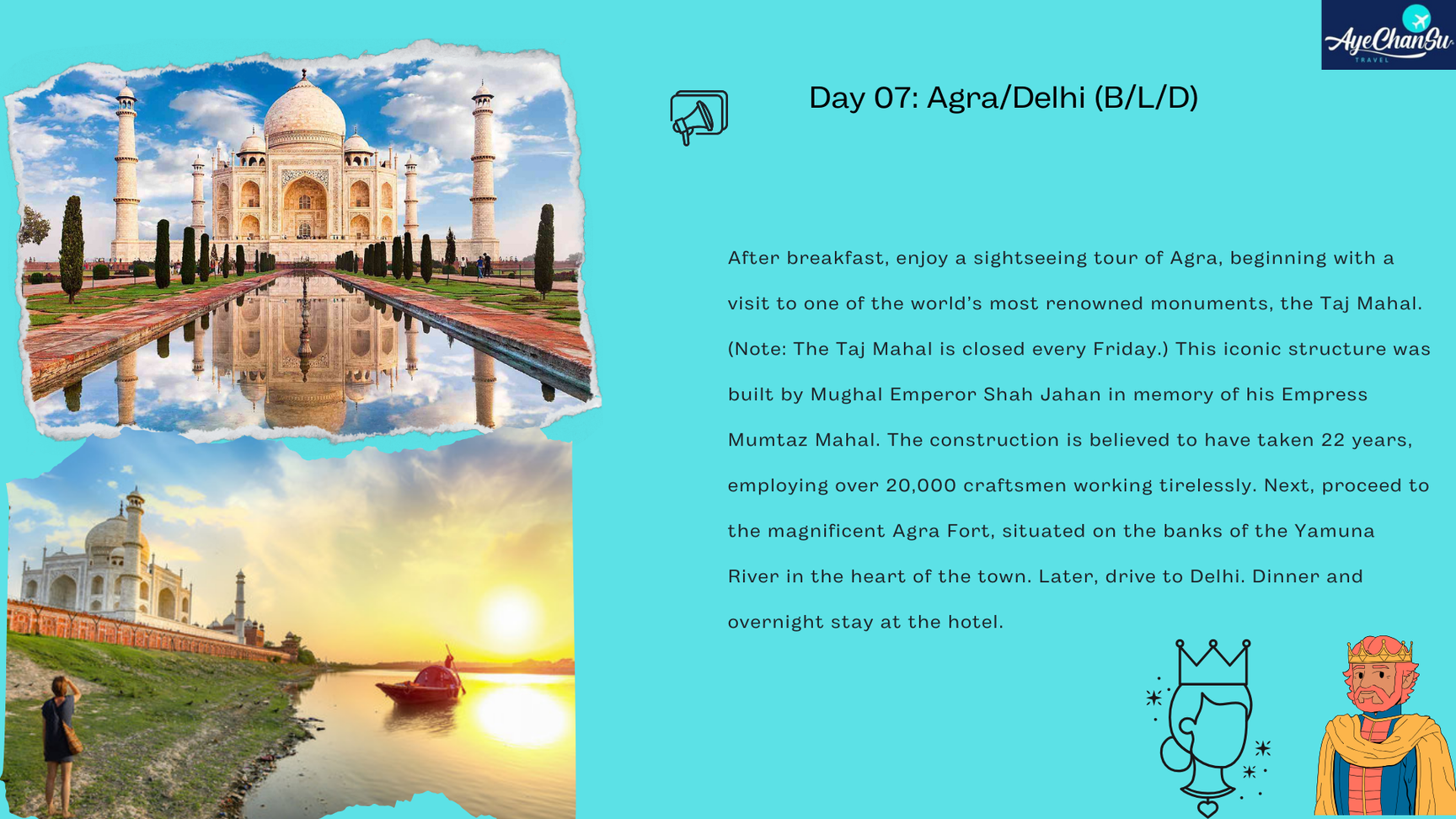Welcome to Aye Chan Su LLC company profile, where we aim to turn your travel dreams into reality. With a deep passion for exploration and a commitment to providing unforgettable experiences, we specialize in creating bespoke journeys tailored to your unique preferences. Our dedicated team of travel experts is here to guide you every step of the way, ensuring that your adventure is not only seamless but also truly exceptional. At our tourism company, we believe in the transformative power of travel. Whether you seek relaxation on a sun-drenched beach, cultural immersion in bustling cities, or thrilling adventures in remote wilderness, we have the expertise and resources to make it happen. From luxurious accommodations to off-the-beaten-path excursions, we take care of every detail so you can focus on creating lifelong memories. Our commitment to sustainable tourism practices means that we strive to minimize our impact on the environment and support local communities wherever we go. By choosing our company for your travel needs, you are not only embarking on a remarkable journey but also contributing to the preservation of our planet and the livelihoods of those who call it home. Join us on a journey of discovery, connection, and wonder. Let us be your trusted partner in exploring the world and unlocking its endless possibilities. Your adventure starts here, with our tourism company."