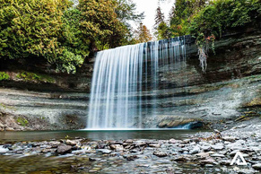 Watkins Glen State Park: Glen Creek has sculpted a dramatic gorge into the hillside of Watkins Glen, creating an extensive network of rock formations. Over a span of two miles, the glen's stream descends 400 feet past 200-foot cliffs, forming 19 waterfalls along its path. The gorge trail winds over and under these waterfalls, including the spray of the Cavern Cascade.